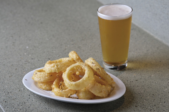 衣にビールを使い、サクッと香ばしく揚げたオニオンリング。中東のスパイス「デュカ」で風味豊かに仕上げました。ビールのお供にぴったり!